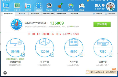 從圖片可以看出,ZC-DN-H310QH主板配酷睿I3-9100處理器搭載8G筆記本內(nèi)存32G固態(tài)硬盤跑分最總結(jié)果為136009高分;