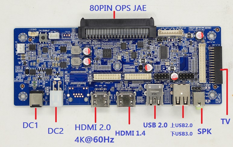 OPS子卡,也叫OPS轉(zhuǎn)接卡、OPS轉(zhuǎn)接板、OPS擴(kuò)展卡,按照 INTEL(Open Pluggable Specification)開(kāi)放式可插拔規(guī)范生產(chǎn),是將OPS電腦與一體機(jī)、電視機(jī)的內(nèi)部線路進(jìn)行連接的一個(gè)橋梁,可以將一體機(jī)或電視機(jī)內(nèi)部電源,通過(guò)OPS JAE接口提供給OPS電腦主機(jī),同時(shí)將OPS電腦的HDMI、DP、Audio、USB、COM、開(kāi)/關(guān)機(jī)等信號(hào)通過(guò)OPS JAE接口與觸控一體機(jī)的液晶屏驅(qū)動(dòng)板、喇叭、觸摸框、開(kāi)關(guān)等部件進(jìn)行對(duì)接,通過(guò)拔插即可實(shí)現(xiàn)觸控一體機(jī)、液晶電視機(jī)與OPS電腦主機(jī)之間連接使用!